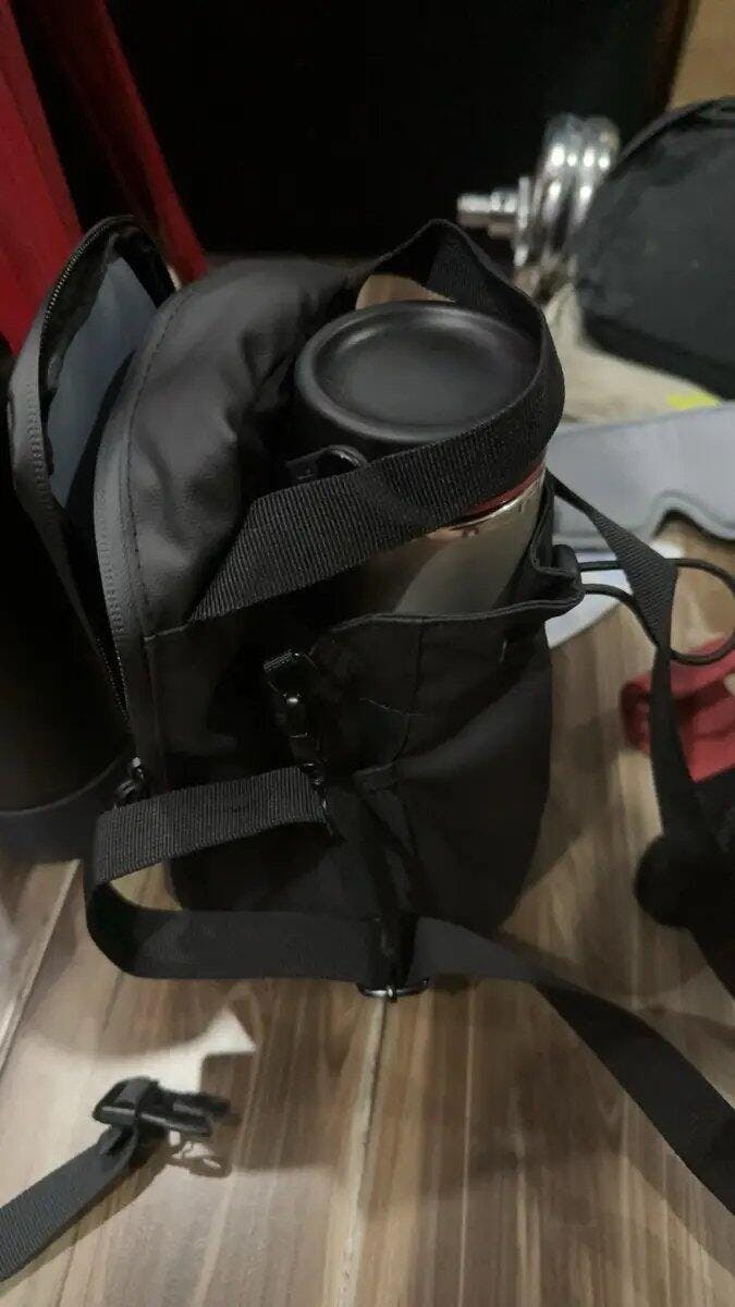 - Compartimento central diseñado para el transporte seguro de botellas o termos de gran volumen.